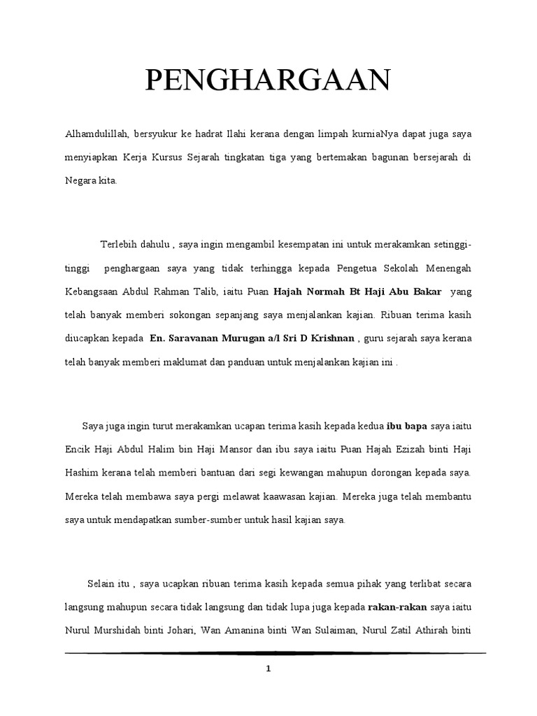 . Isi kandungan butir halaman sinopsis i isi kandungan ii penghargaan iii 10 pengenalan 1 20 objektif kajian. Saya telah mengupah dua orang pekerja iaitu enaziz dan enamran sebagai. Contoh penghargaan kerja kursus sains komputer.